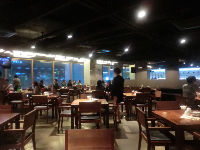 店はカッパ寿司の2階。オシャレな階段を上って、2階に上がると、少し照明は落としているけど、解放感があって素敵な空間です。