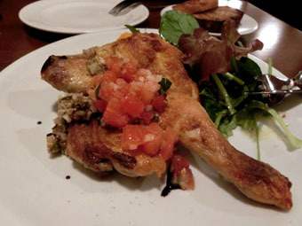 香ばしく焼かれたひな鶏、ディアボロソース、あまり刺激なかったなぁ