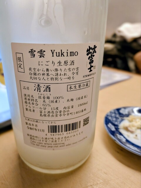 出雲富士のにごり(ぐい飲み)から。うん、フレッシュで美味しい。