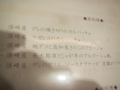 食べながら本を読んでいると、現れるグレのグリエ。グレは須崎獲れらしい。