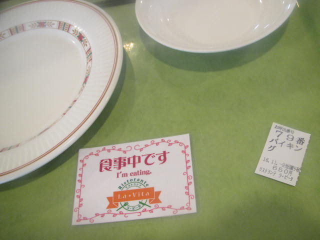 バイキングの半券を机に置く(バイキングは席を立つこと多いので空席と間違わないようにか)