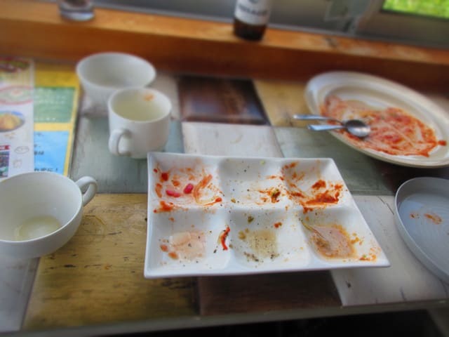 あと緑色したソースをつけると、味が軟化する、なんか軟化した味になってあとグリングリーンを思い出す。