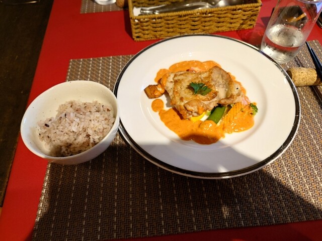 私はお肉で先ずは試しと一番安い鶏肉で、母はお魚メニューで同じお値段のメニューにドリンクとデザート付きで注文しました。