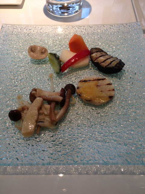 階段を降りるとフワフワの絨毯。案内係の女性が付き添って席まで誘導してくれました。鬼カサゴ、伊勢海老などなどが泳ぐ水槽を抜け、龍の絵が描...