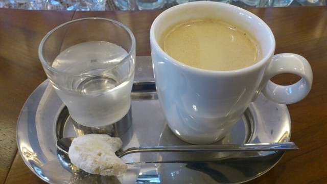 喫茶店としての存在感も忘れられない。昼など、ちょっとだけ一休みに寄ったりする。ドイツ系のコーヒーは味わいが濃厚で、ダークな雰囲気。日本やアメリカのコーヒーショップと異なるのは、シルバー系の食器類を多用することで、メタリックなカッチリ感がドイツらしい雰囲気を醸し出している。