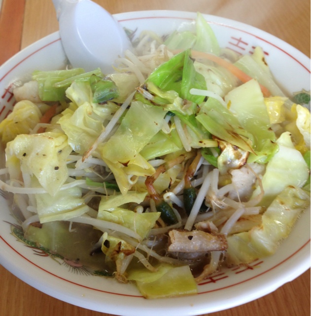 野菜たっぷりの塩味の効いたガテン系ちゃんぽんです。ふくちゃん亭のちゃんぽんより、ワイルドだろぅ?