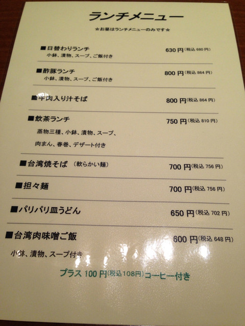 なんと、このお茶は飲み放題!水代わりに何杯飲んでも、無料です。有料でも良いのでは・・・。:(;゙゚'ω゚'):といつも思います。