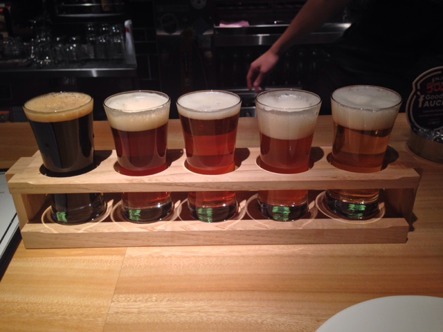 5種類のハウスビールを小さなグラスで飲み比べできます。