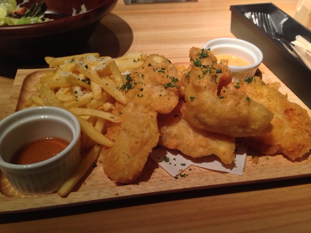 フィッシュ・アンド・チップス(850円台)も注文しましたが、これも適切な揚げ具合で、美味しい上にボリューム満点で、一人では絶対に食べきれません。(;^ω^)