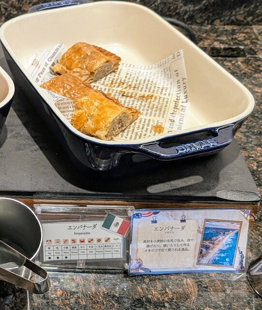 お料理は今回カリブ海周遊 南北アメリカ大陸地方のフェアと言うことで、異国情緒溢れるメニューが盛り沢山。というか、料理名じゃ何の料理か判らないものが沢山ありました。