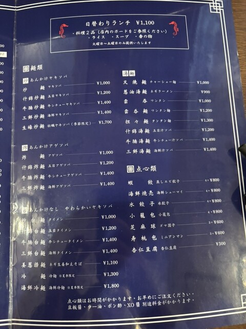 ちなみに「生蠔炒麺」は冬季限定のメニューとなっております。