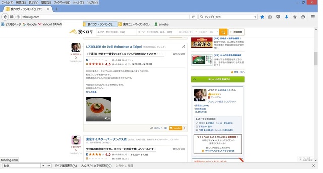 今後は使い勝手の悪い食べログには投稿せず、ブログへ移行したいと思います (2015/12/14)