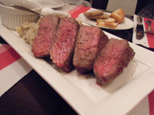 衣は薄く淡い色で、火の通り方はミディアムレアぐらいな感じでしょうか。