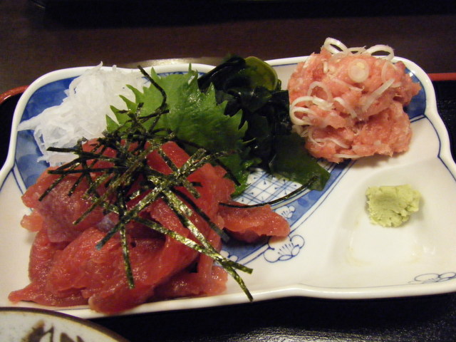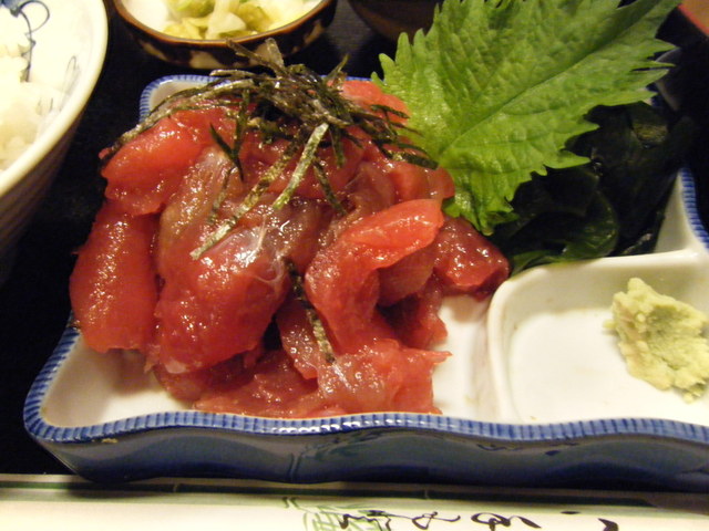 軽く醤油に漬けられて、唐辛子のアクセントがありました。