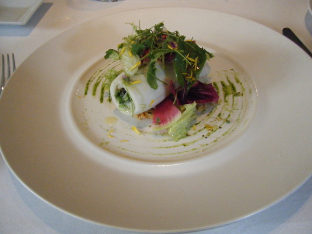 前菜は野菜と魚を中心とした盛り合わせ。