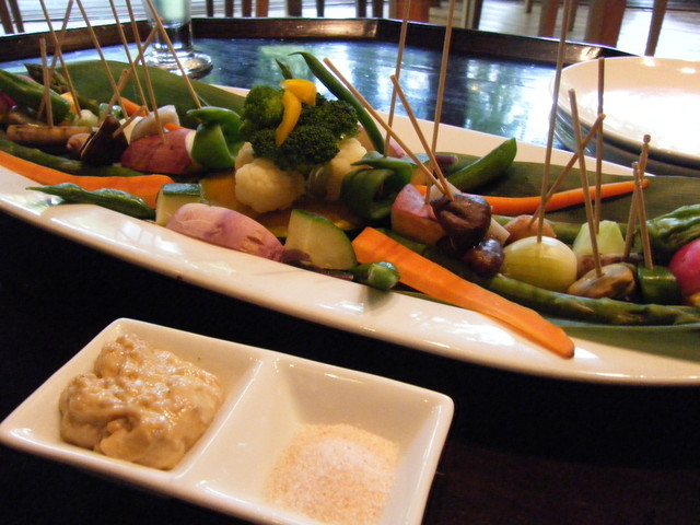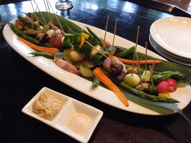 山野のおまかせ盛りは茹でた野菜がたっぷり。特にアスパラガスが沢山盛られていました。