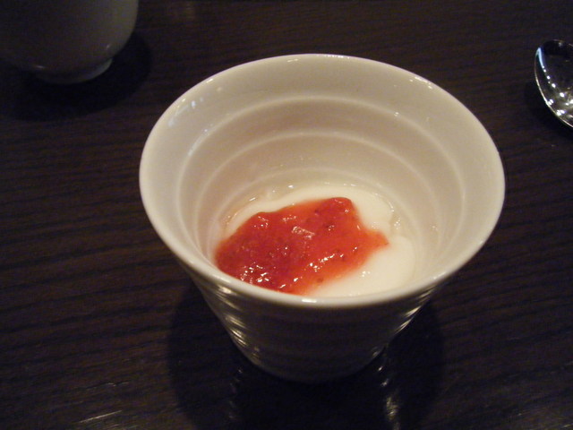 デザート(杏仁豆腐にフレッシュプルーンのソース)