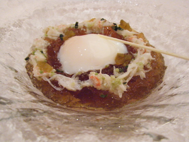 ゼリー仕立てのスープはあっさりとして、卵と絡めるとやや濃厚になるという調整をしながら頂くのが面白かったです。