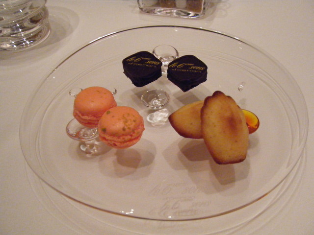 ホワイトチョコの入ったマカロンとフィナンシェとチョコ。