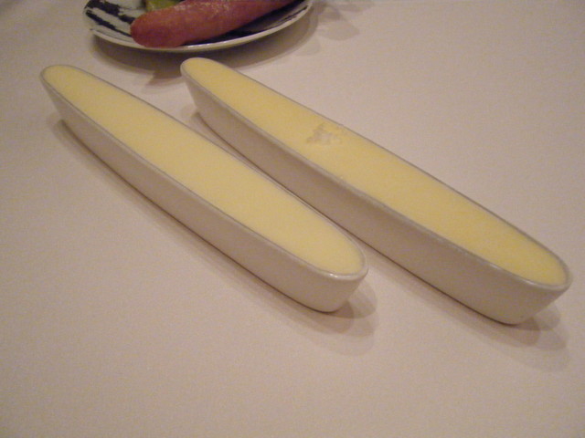 パンは自家製3種類。バターはエシュレの塩入と塩なしのバター2種類。