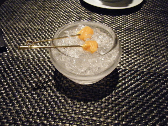 うなぎとフォアグラを口に含んで、それを追いかけるようにマンゴーを食べるように説明がありました。