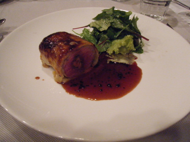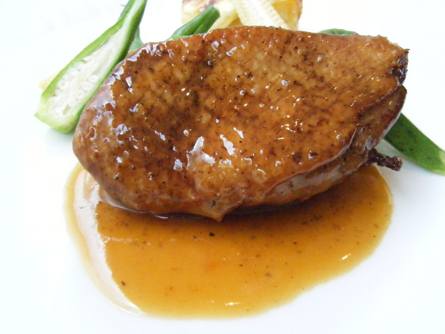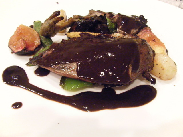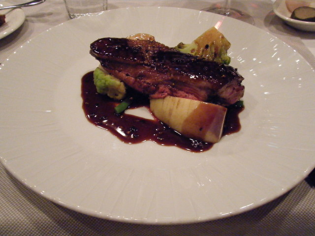 ビュルゴーのシャラン鴨胸肉のロースト 蜂蜜風味 赤ワインソース(3200円)