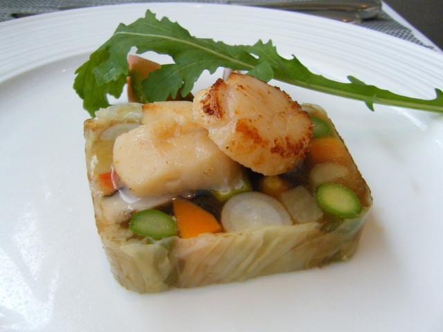 秋野菜のテリーヌ ホタテのソテー添え