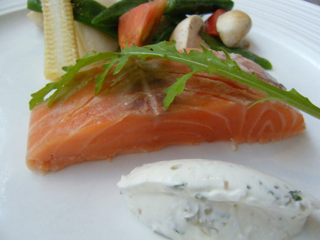 ○前菜:半生に火を入れたサーモン サワークリーム添え