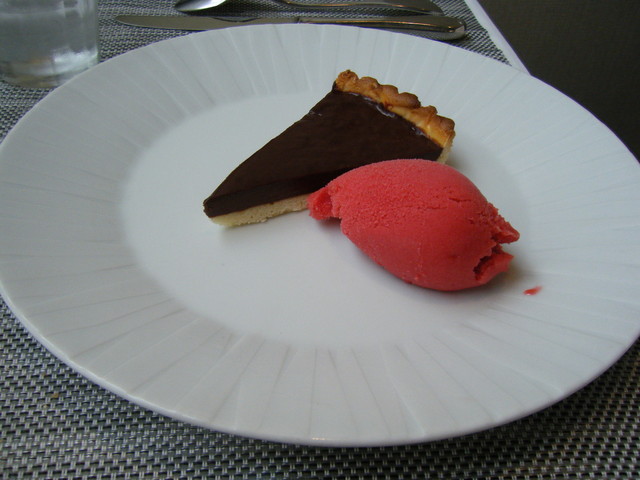 上にマンゴのシャーベットが乗り、爽やかな味わいのデザートでした。