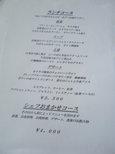 ・シェフのおまかせコース(4000円):前菜+魚料理+肉料理+デザート+カフェ