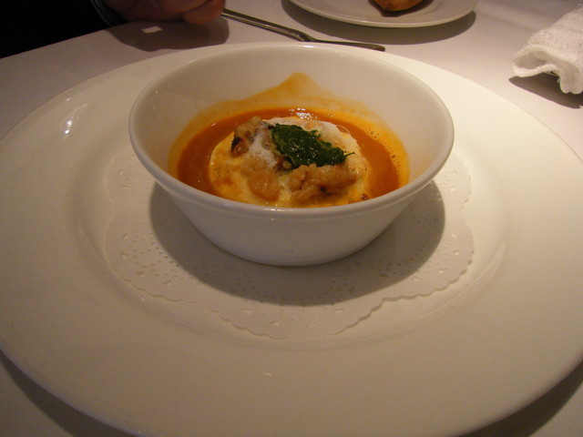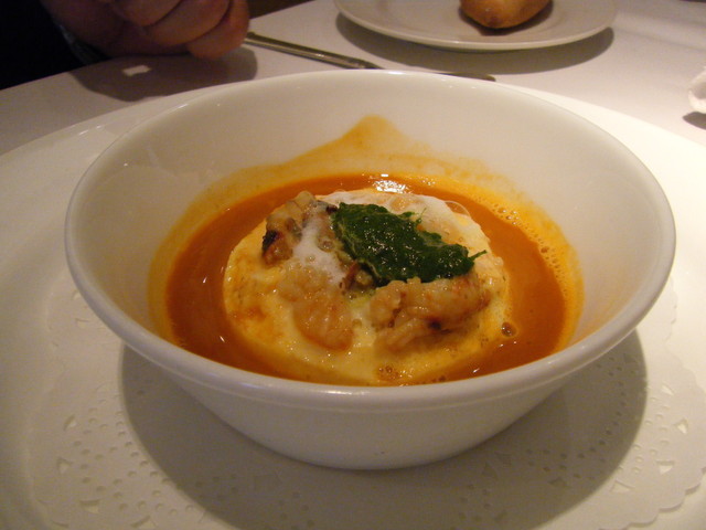 北海道阿寒湖産エクルヴィスとそのビスク、ニンニクのフランと共に