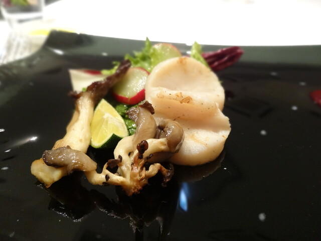 ・旬鮮魚(帆立貝)と秋のきのこの炙り焼き