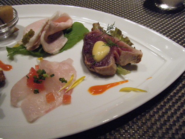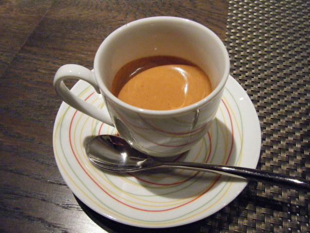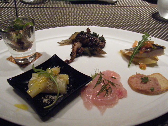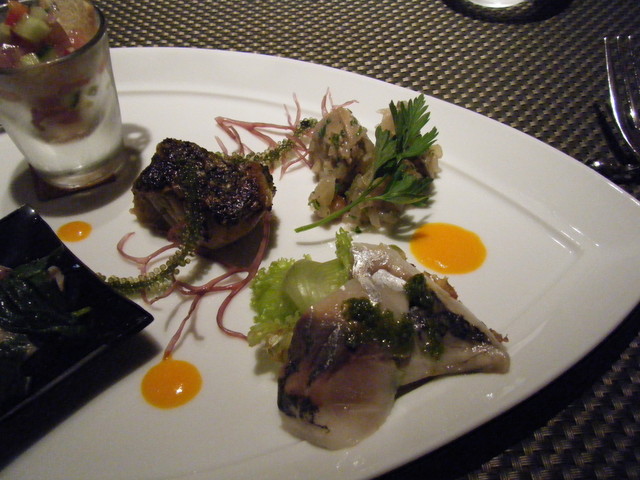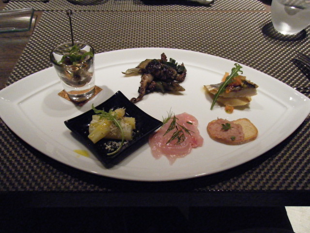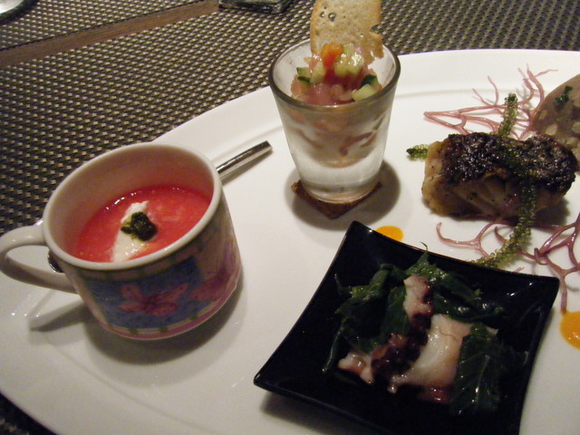 今回は前菜の盛り合わせが美味しく、特にトマトのガスパッチョが最高でした。