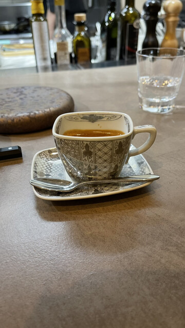デザートに合わせてエスプレッソをいただきました。伊万里焼の器だそうです。
