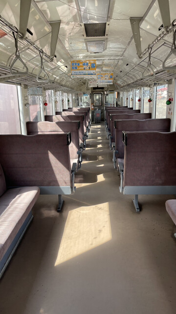 私鉄では珍しく車内販売があります。ここでスルメイカを買うとストーブの上で焼いてもらえます。車内はスルメイカを焼く香りで充満するのは言うまでもありません。焼きたてのスルメイカは香ばしくとてもおいしかったです。