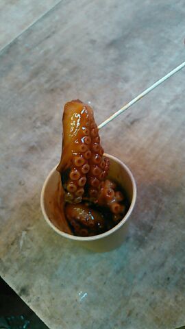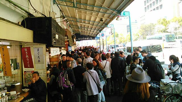 ★2019・9再訪 ダチの店に「タコの照り焼き」を買いに河岸を訪問。相変わらずの人出のほとんどが外人観光客で、金曜日の今日は白人半分、大陸系半分って感じです。暑さと忙しさで不機嫌そうな還暦近い、若女将と、元パンクバンドでモヒカンだった3代目、あと洗い場のおばちゃんのいつもの3人組、大女将は俺が来そうなんで帰ったそうです(笑)ホルモン大盛りとライスとお新香、食い続けて今年で47年目となりました。。。w