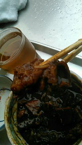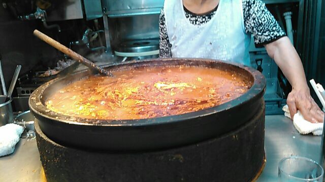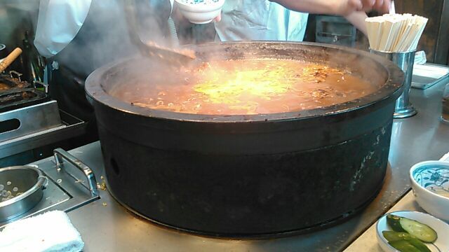 、時間は10時半、いつもの混雑が無いのは水曜日だからでしょう。いつもの3点セット(ホルモン大盛り、ライス、お新香)がスーッと出て来て、それを追うように「肉豆腐」が・・・、大女将のお年賀だそうです、ありがたや々(笑)相変わらず外人客がカメラを向けると「ノーノーノー」を連呼してます、御年80才!まだまだ元気です。今日もあんまり混んで来ると出ました、伝家の宝刀「準備中です、20分待ち・・・」を若くない若女将が・・・(笑)食い終わると「もうイイのか!?」って大女将、俺はもう60才だよ、と断ると「なーに言っちゃてんだい!?、未だガキのくせに・・・」だって、ホントに元気だ、よっぽど息子が心配なんだろーな!?(笑)