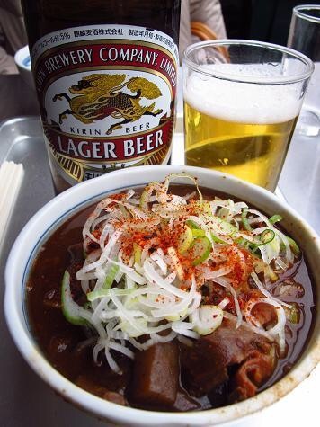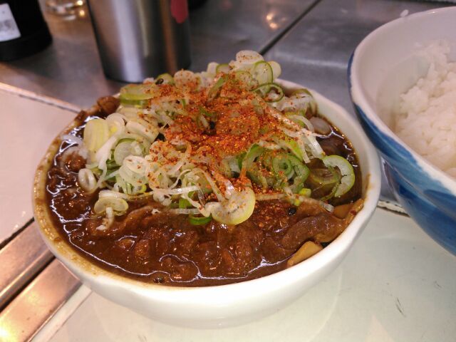 ★2013・9 再訪 「幸軒」~「きつねや」の黄金リレーは何年も前から変わらないですが、変わったのがその食う量で流石に若い頃のようにはいけません。ライスも小盛りの小ライスで、肉豆腐も牛皿も付けません、お新香食うのがやっとです(悲笑)まあそれでもチャーシューメン食って、300mくらい歩いて叉コイツが食えりゃあ大したもんか?(笑)それにしても今日の河岸は空いている、いつもの外人観光客も居ないし、あの「井上」も行列どころかガラガラです。それにしちゃあ「ホルモン煮」はふわばっかりでホルモンが少なく、いつもより煮詰まっていて濃いお味。ホルモンが店に無いなら早く加工場から持って来い~い若大将!!と言ってやりたかったです!(笑)