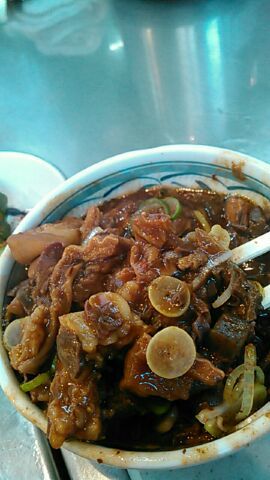 ※11月中旬、久々に訪問。若いときは幸軒でチャーシューメン食って、きつねやでホルモン&ライスがお決まりのコースでしたが、流石にこの歳になるとバアチャンと嫁さんに顔を出すくらいしか出来なくなりました(悲)。強引ともいえるバアチャンの「食ってけ攻撃」にライスを小盛りで勘弁してもらいホルモン丼を。旨い旨い!40年間ブレも無し!拍手!!過去に東京3大煮こみ(山●喜、大●し、岸●屋)も制しましたが、どこも何でやねん???の感想。如いていえば山●喜かな?まあここは昔から「きつねや」のパクリ?だから当たり前か?店主も50歳を超えて益々お盛んと喜ばしいところですが、4代目の継承問題が個人的に一番の心配事です。