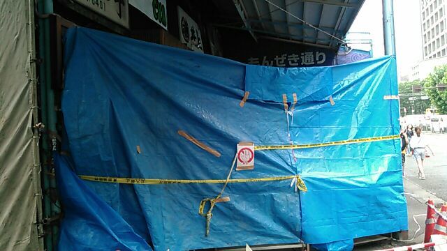 ★2015・9再訪 赤坂から築地へ、少し時間が遅くなって10時半着。まずは幸軒の冷やしなんですが、もうこの時間ではオリジナルなヤツは食えない、そこで支店?の「シューマイ屋」のおやじに訊いてみたら、やはり今朝は大将が9時10分過ぎに、女将は30分過ぎに帰ったそうです。っとなるとやはりダメ、昼からの味を訊いてみるとやはりオリジナルとは大分違うみたいで、ラーメンすら違うそうです。うーん、古くからの「幸軒」ファンにはマジでうーんですよね、知らない人はこれが築地の「幸軒」の味となる訳ですからやはりうーんです。。(>_<) 気を取り直して「きつねや」へ、相変わらずゴチャホチャした中で、訳の分からない言葉と変な英語が飛かってます(笑)それにしても以前は考えられなかった、大陸系のお客にも心を開いた若くないけど若女将はエライです。大女将は相変わらずブツブツ言ってますが(笑)いつもより早く大将が来たので大女将とチェンジ、「送ろうか!?」って聞いたら「パチンコ行くからイイよ」だって、可愛くねェーばあさんだ(笑)ホルモンはいつも通り美味しかったですよ~♪