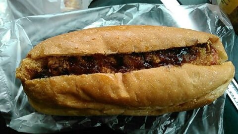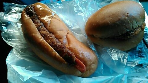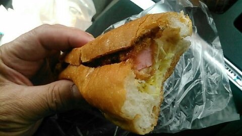 ★2019・4再訪 今朝も八王子遠征、それじゃ朝メシは石川PAで八王子ラーメンでも食うかと思いきや、よもやの落下物渋滞で諦めて、結局は西八王子のアジアドでパンを買い食いました。揚げソーセージ、ハムカツ、ハンバーガーといつもと同じですが、どれも美味しくて頬っぺたが落ちます(笑)