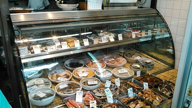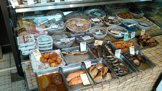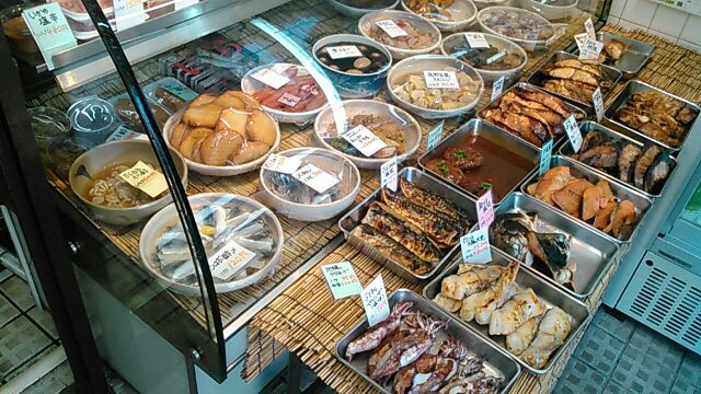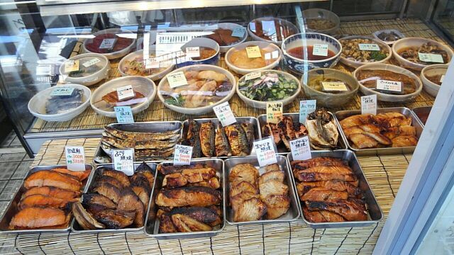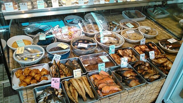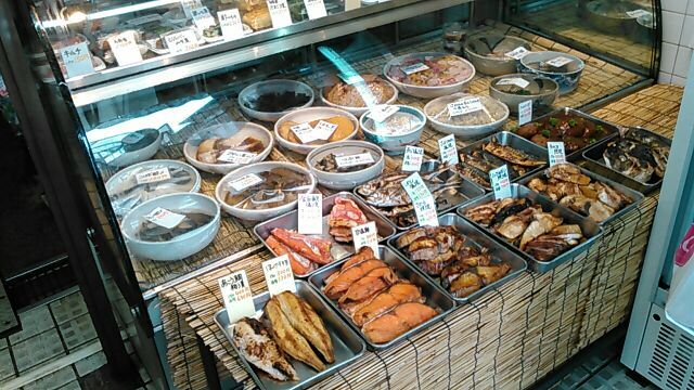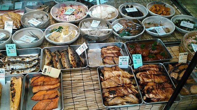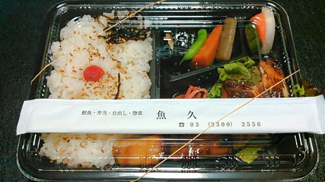 ★2018・2再訪 ここ最近肉ばっかり食ってることに気が付いて、今日ぐらいは魚を食おう、っとなると目指すはチトカラの「魚久」です。時間は11時半で先客は2人、ご近所の奥様で、お惣菜を買いに来てました。惣菜棚をザっと見た感じ「おきめだいの照り焼き」と「自家製ハンバーグ」にまだ湯気が立っていたので即、「おきめだいの照り焼き弁当・730円とおかずにハンバーグ・330円ねぇ~」と娘さんorお嫁さんと思しきお姉さんに注文すると、顔色一つ変えず作ってくれます(笑)近くの公園のPで車中食、ごはんに胡麻と梅干、おきめだいの照り焼き、切り干し大根の煮物、切り昆布の佃煮、お新香、紅ショウガのラインナップですげ~旨いです!もう少しボリュームがあればモアベターなんですがねぇ(笑)前回と違ってハンバーグもにんにくが効いていてこれも旨しです。他の魚(さわら、めかじき、キングサーモン、銀鮭、子持ちカレイ、さんま、いわしetc)も含めて、一週間に1度くらいのペースで食べるのもイイかと思います。あ~旨かったっと。。。!(^^)!