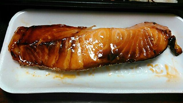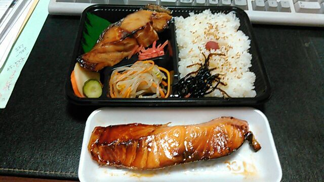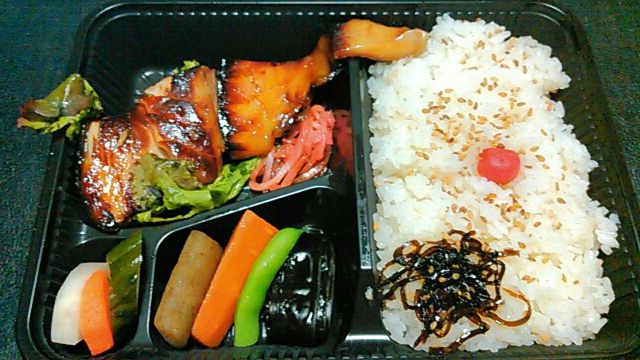 ★2018・5再訪 ♬~あたまあたまあたま~あたまが良くなる~♪、ってなわけで今日のランチは魚の弁当、チトカラで魚の弁当と言えばココ「魚久」です。お約束の「おきめだいの照り焼き弁当・730円」に副菜も「ブリの照り焼き・330円」にしました。相変わらずおきめだいは脂の乗りが良くてすっげぇ~旨いのでほかのおかずが霞んでしまいます(笑)ブリ照りも普通に美味しいですが、おきめだい(単品・500円)と比べちゃうと値段の差・170円以上の差があると思います。次回はキングサーモンの照り焼きかさわらの粕漬け、大好きな銀だらのカマ焼きなんかもイイですね、とにかくココは魚だけ選んでおけば間違いなしです(笑)