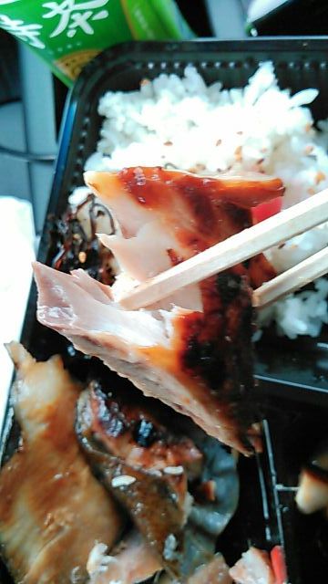 ★まめ氏ご推奨の鮮魚店がやってる手作り弁当の店、前に2度ほど時間前のお手付きで買えませんでした。今日は弁当が販売される11時を目指して初訪、車は地元の秘密のPに停めてです(笑)先客は1人のおばちゃんで、焼き魚とお惣菜だけを2500円も買って行きましたけど何者なんでしょうね?そうそう終いにはリンゴ1個も買っていきました(笑)注文は「沖目鯛の弁当・730円」「自家製玉子焼き・200円」「こんにゃくの煮物・250円」ト―タル1180円也、ランチから少々飛ばし過ぎました(笑)実食!沖目鯛ってあんまり聞いたことが無いですがようするに目鯛モドキなんですね、目鯛は旨いからモドキでも旨いでしょう(笑)マジでこの照り焼きは脂が乗っていて、漬けダレ、焼きダレ共さすがプロのお味と思える逸品だと思います。ごはん、切り昆布、春雨煮、お新香も〇、良いバランスの弁当です。ただボリューミーではないので、ガテン系男子にはごはんの大盛りなんかにも対応してくれたらイイでしょうね。総菜の「玉子焼き」は甘みが無くて正直自分にはイマイチ、あとこんにゃくの煮物も出汁は効いてはいますが独自の臭みが気になります。残念ながらデビュー戦は惣菜がNGでしたが、次回はハンバーグや揚げ物の弁当なんかも試してみたいと思います。最後に、沖目鯛の照り焼きは本当に旨くて★3つです!(笑)