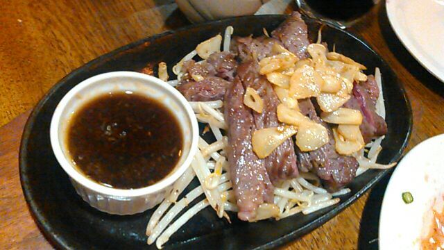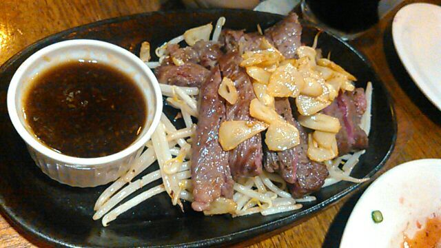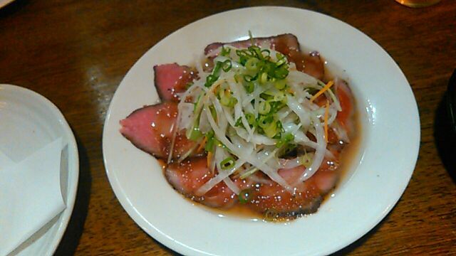 ★ベースマンの弟君が一推しの店、ヤツの今まで推して来た店が殆どビミョーでしたので半分期待しての初訪です。駅近くのサイゼリアの反対側のビルの地階、こんな店あったかなぁ?ってくらい目立たず地味です(笑)店は思いのほか広くて、手前にカウンター席、のテーブル席があって奥には4~5人掛けのテーブルが3つ、20人ぐらいの宴会が出来そうなスペースがあります。そんな店を厨房にマスターともう一人、ホールに茶髪だけど感じの良いお兄さんと、仕事が出来るぞ!って感じでホールを仕切ってるメガネの熟女風なお姐さんが居て、好きなタイプです(笑)メニューを見てもこんなに出来んのかよってくらいの量と安さに笑っちゃいます(笑)ホッピー、瓶ビール(大)ボトルワインを叩ききゅうり、ウニソースとフランスパン、ローストビーフ、ピザ、ステーキ、魚肉ソーセージフライ、〆のスイーツまで、とても1軒目でとんかつをあれほど食った後とは思えないアホなじじい達の食欲です(笑)それにしてもココの料理はなんでもクオリティは高いけど値段はバカ安い、弟君とは60年くらいの付き合いですが、初めて良い店を紹介してくれました(笑)隣のグループのガーリックライスが美味そうだったけど我慢しました。牛すじ煮込みからステーキ、ガーリックライスまでなんでも食えるところはあの吉祥寺の「カヤシマ」に似てますね、お一人2000円っと、こっちの方が安いけど。。。w