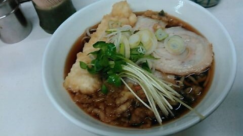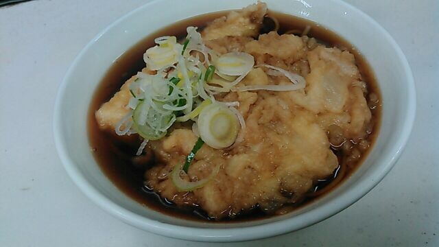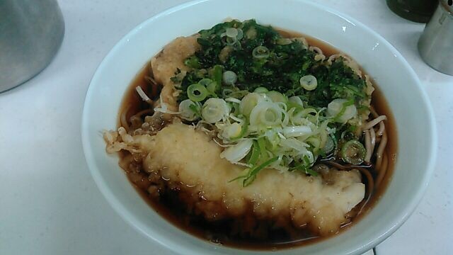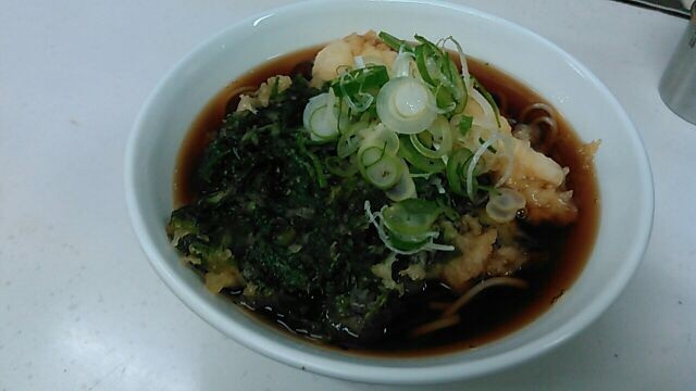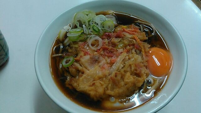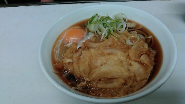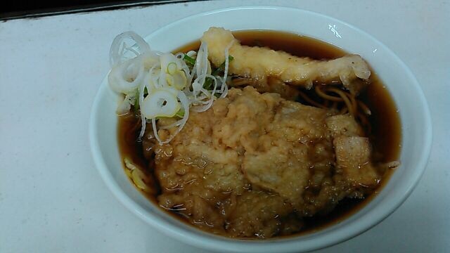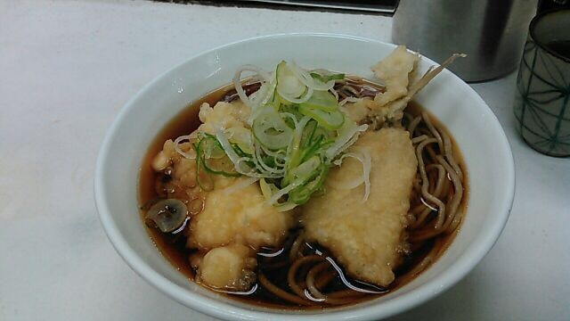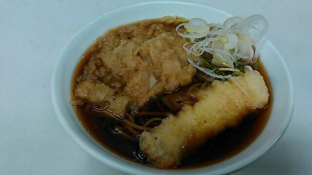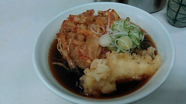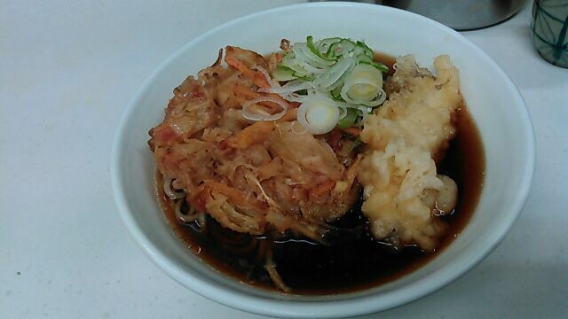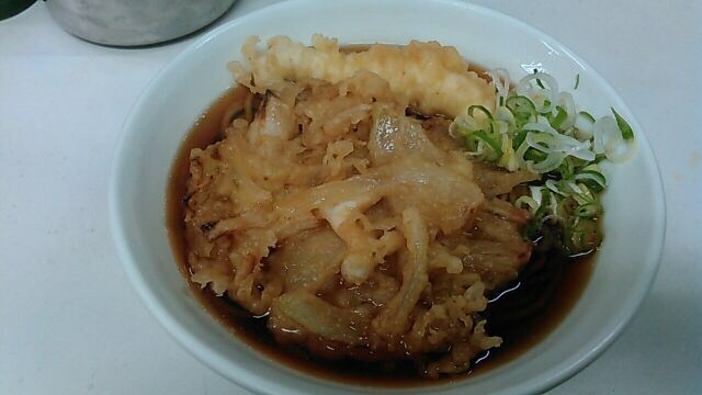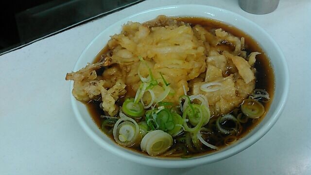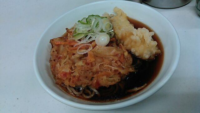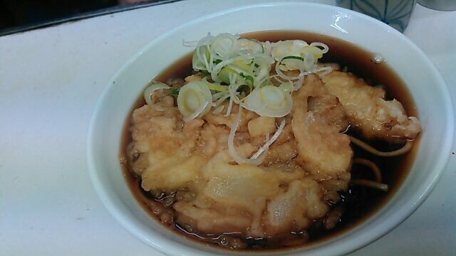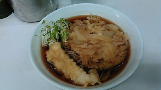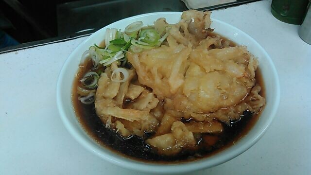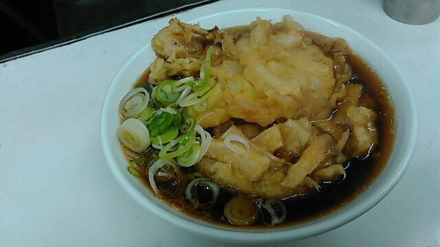 ★2019・1再訪 今朝のお話。8時ちょい前に行くと先客のお兄さんは、天ぷらを肴にビールを飲んでます。そしてビールをお代わりした時に事件が起きた、そしてそれを目の当たりにしたのです(笑)JWCPEのバド女のAちゃんがビールを冷蔵庫から出したまでは良いが、さぁー栓が抜けない、あーかなぁ?こーかなぁ?と悪戦苦闘、もうダメだと泣きそうになったところで女将の助太刀、まるで婆さんが孫に教えてるみたいで笑えます。聞いてはいましたがマジで今の子は栓も抜けなきゃ缶切りも出来ません(笑)驚いたっていやぁ、その後客のお爺さん、「うどんにイカとちくわを2本ずつ載せて」だって、食いすぎだろって思ったら普段より少ないっていうから驚き、本当チトカラは奇人変人の宝庫。。。wそうそう食べたのは玉ねぎイカ天そば・490円です。