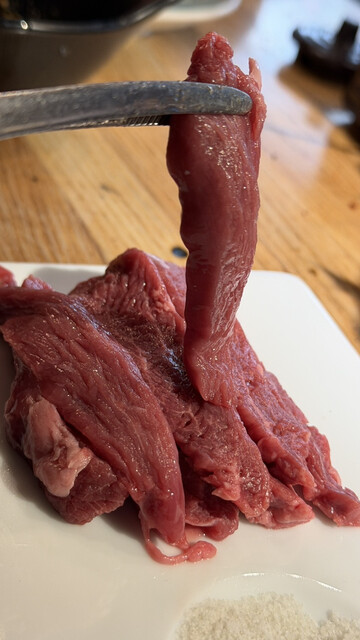 成吉思汗のお肉は赤みとアブラ付のミックス。