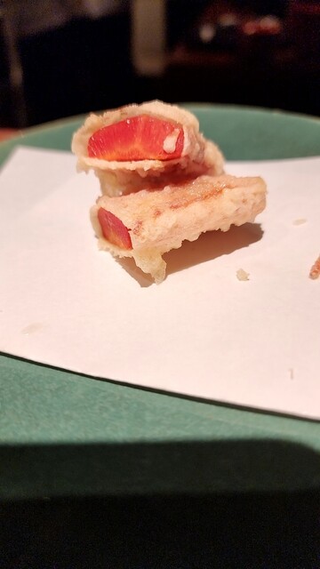 今回も鯛から始まり、揚方を変えた海老から締めのかき揚げ丼、鮪のお茶漬けまで堪能しました。今回はワインをあわせて楽しみました。金時人参の甘さが印象的で、大好きな穴子、なすび、メイクイーンもお気に入りです。次はまた先ですが楽しみにしております。ご馳走さまでしたぁ。