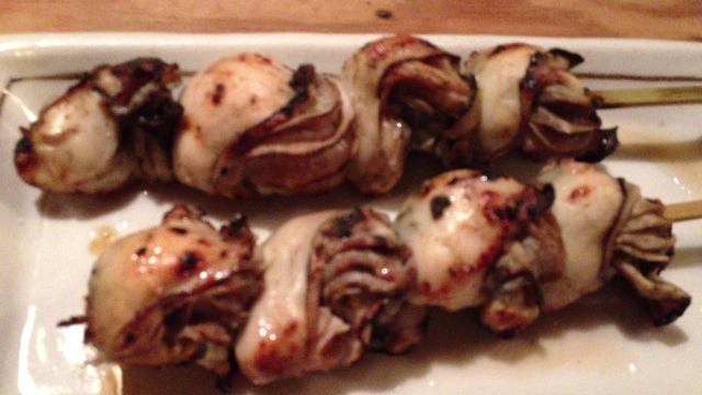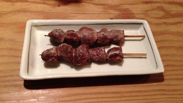 極め付けは大阪人もびっくりの串カツ。自分は大阪出身で、同僚も大阪勤務経験ありです。串カツははじめ期待していなかったのですが、豚バラの串カツと玉ねぎを注文。食べてみて、大阪に負けじとも劣らない。ほんまにうまかった、