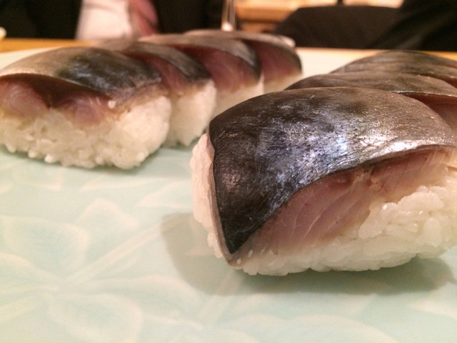 この日は、初めて浜勢に来た同僚と。付出しは自家製からすみ、定番のポテトサラダ、お刺身は天然鰤。これは旬で旨い。背の部分と腹の部位でめちゃ旨い。北寄貝の刺身もいつもながら美味しい。浜勢に来て初めて食べる〆鯖焼き。ジューシー!